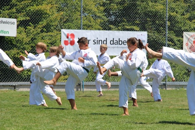 Unter der Leitung unseres erfahrenen Trainers Palden Gangshontsang (5. Dan SKF/JKA)  trainierten Gross und Klein auf der Spielwiese vom Blatten-acherschulhaus. Mit den Gastvereinen aus Zürich, Zumikon, Uster, Rickenbach und Lenzburg boten sie den zahlreichern Zuschauern einen Einblick, wie